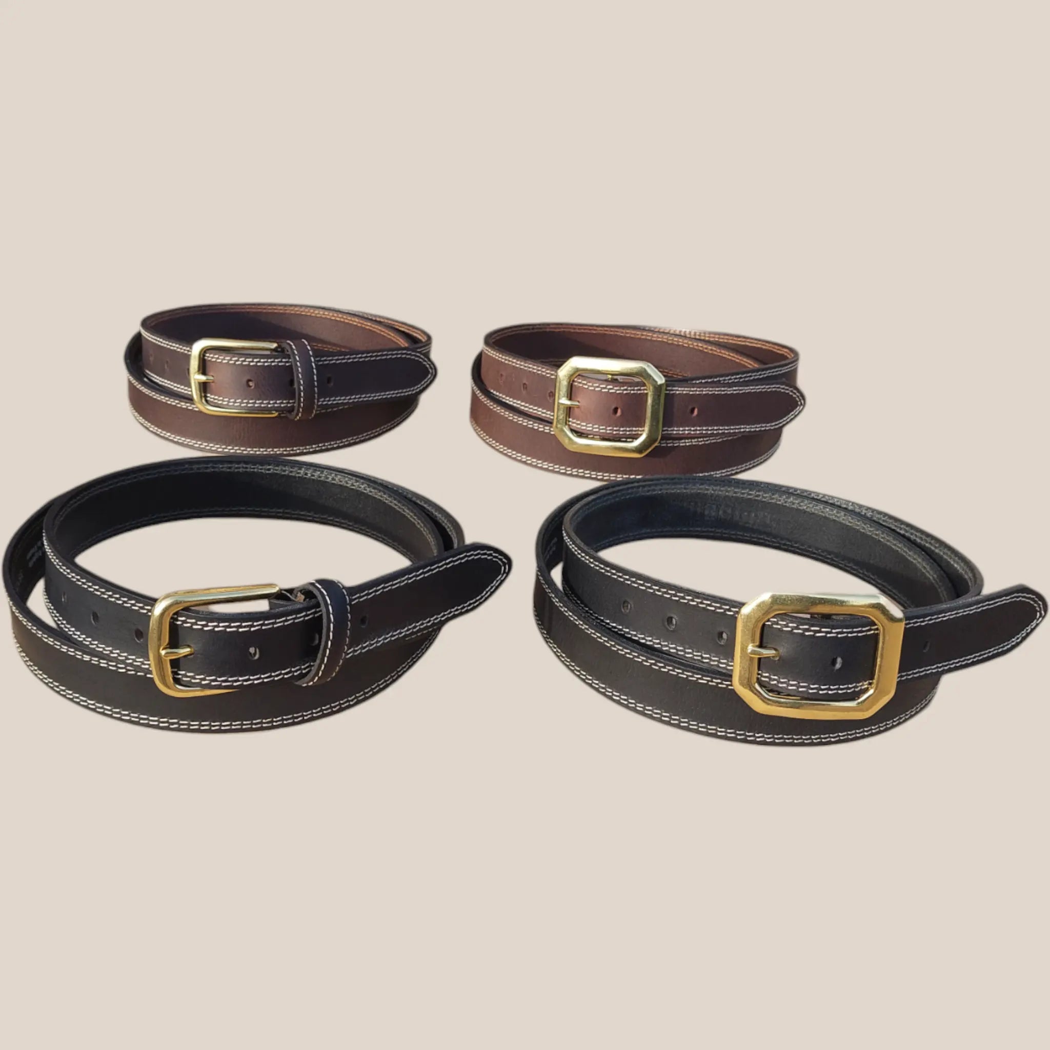 Cuir pleine fleur, avec un tannage végétale et boucle carrée en laiton